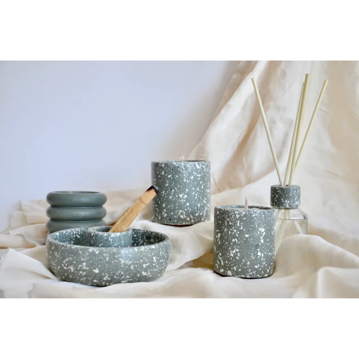 SOLILU candles consist of natural Soy Wax and cotton wick. Candle jars are made from Jesmonite AC100 which is eco-friendly and a water-based composite material. Jesmonite material is safe to use and contains no solvents or VOCs.