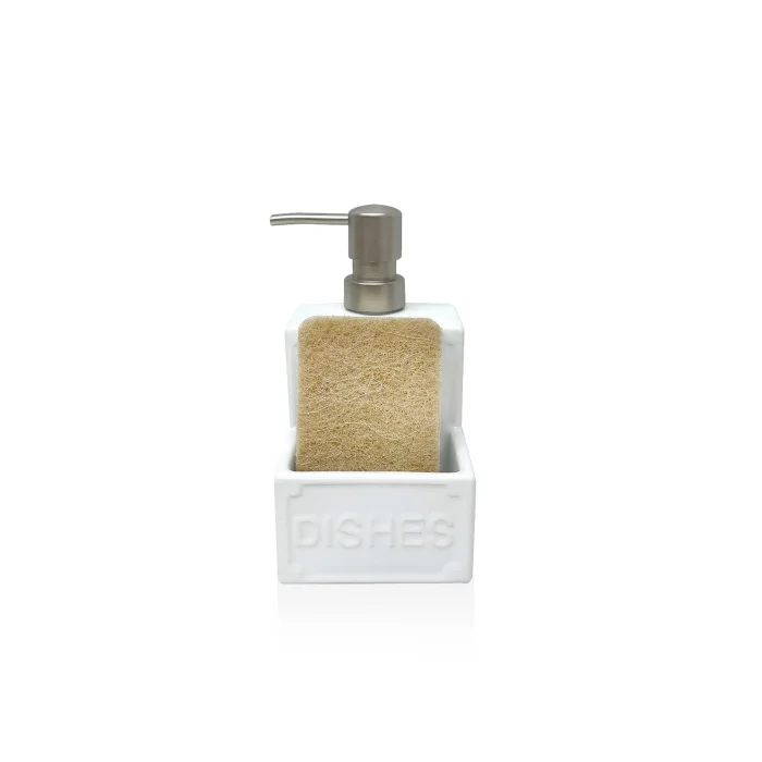 Ceramic Soap Dispenser 350 ml The product consists of 2 parts. Product size: 11x9x17 cmIt will be sent with a dishwashing sponge. It is made of ceramic material. They are modern designed kitchen accessories that will create a decorative look in your kitchen.