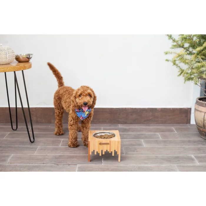 %100 beechwood stand with anti slip , stainless steel bowl.