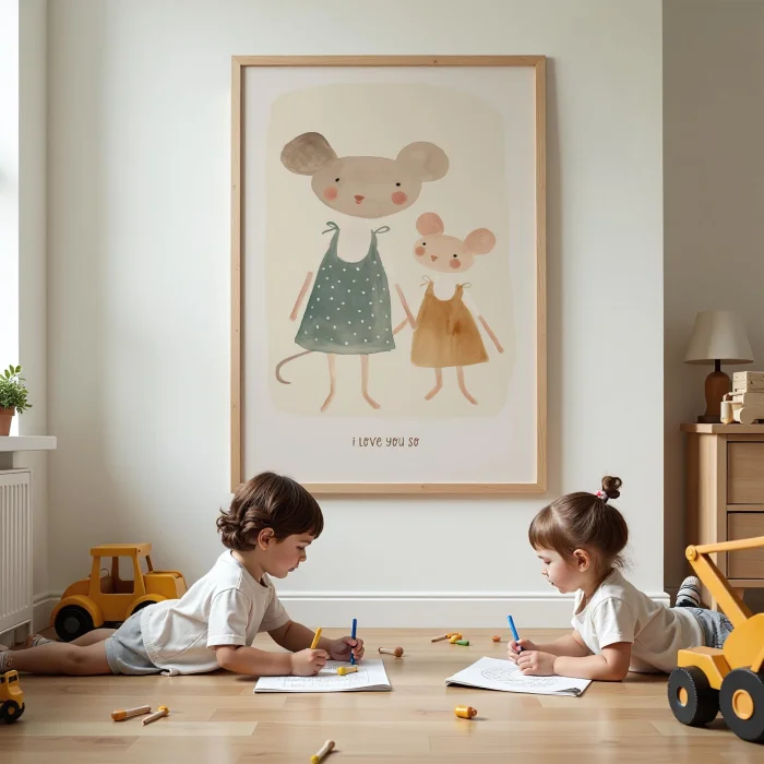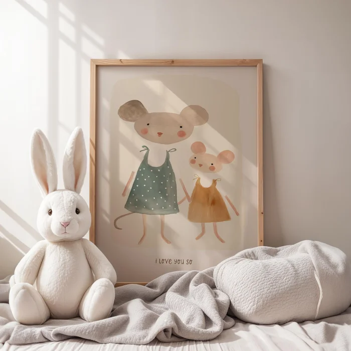 Product: Holding Hands Mice And I Love You So Text Kids Room Wooden Wall Art