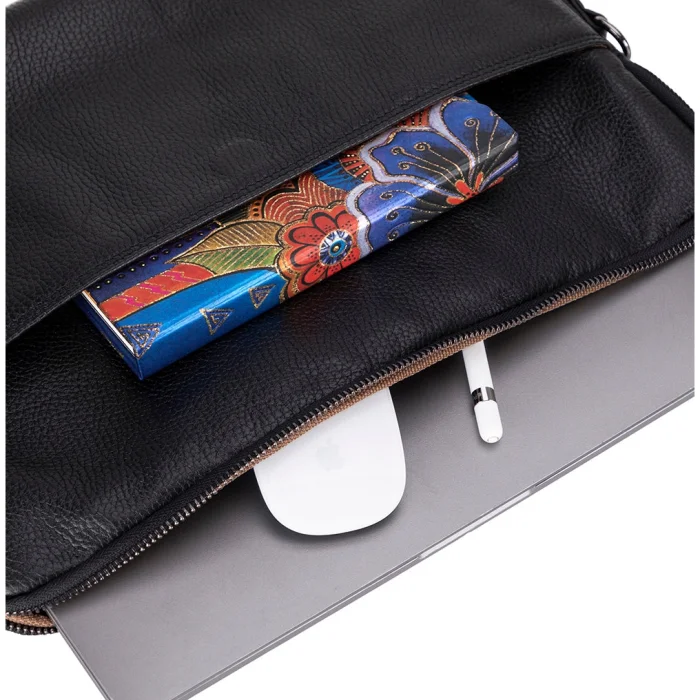 Bloomsleeve Leeds 16" Obsidian Black Genuine Leather Laptop & Tablet Case