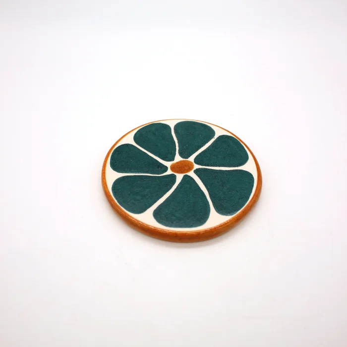 Handmade ceramic coasters, each with unique patterns and special details. Decorated with evil eye beads, colorful dots and modern motifs, these coasters stand out as both an aesthetic and functional table accessory. Use it under tea, coffee or cold drinks to protect surfaces and add a cheerful touch to your table.