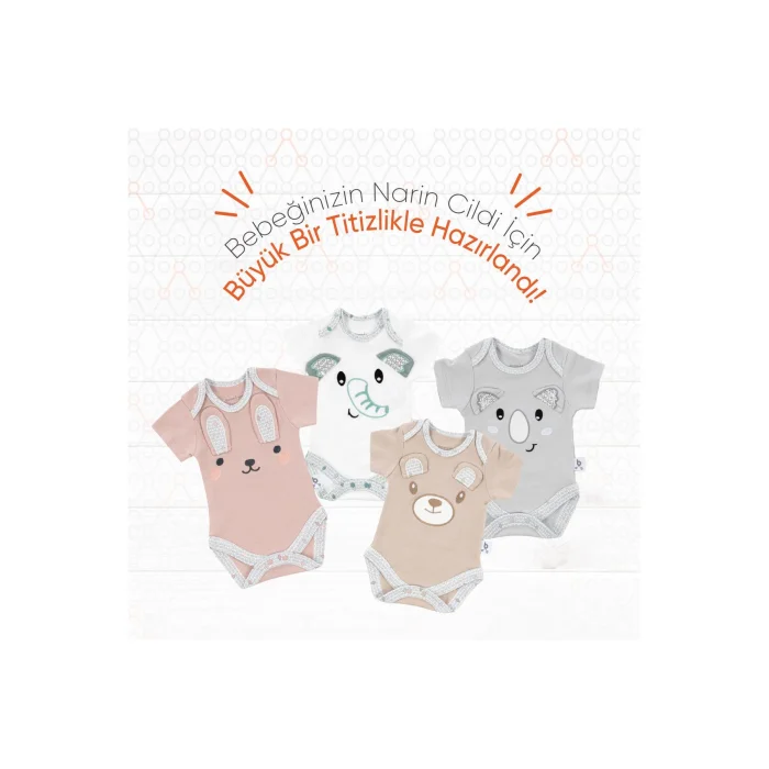Product Description:Gezenbebe Hero Embroidered Short Sleeve Body for Babies: Carefully Crafted for Your Baby's Delicate Skin - With Gezenbebe's Signature Pattern, Beloved Mascots and Exquisite Embroidery Details! The perfect choice for your baby's sensitive skin: Featuring Gezenbebe's iconic patterns, Elephant, Koala, Teddy Bear and Rabbit mascots, as well as fine embroidery details, this bodysuit completes your baby's clothing collection. Highlights:GEZENBEBE'S UNIQUE DESIGN: Not just a baby bodysuit, but a style statement with Gezenbebe's original, exquisite patterns and exquisite embroidery. PURE COTTON COMFORT: Made of 100% breathable cotton, the Hero Embroidered Short Sleeve Body offers the softest touch to your baby's skin.SIGNATURE PATTERN, BELOVED MASCOTS & ELEGANT EMBROIDERY: This bodysuit makes a difference in your baby's wardrobe with Gezenbebe's unique design, her beloved mascots Elephant, Koala, Teddy Bear and Rabbit, as well as fine embroidery details. UNISEX AND MODERN: It is designed for both girls and boys and draws attention with its fashionable patterns. USER-FRIENDLY: Offers easy wearing and replacement with its nickel-free snap design. PERFECTION IN EVERY DETAIL FOR YOU: We care about customer feedback and are constantly improving our products to make them perfect with comfort, fit and quality. Technical Details:Size Options: Newborn, 0-3 months, 3-6 months, 6-9 months, 9-12 months, 12-18 months. Color Options: Bunny, Elephant, Koala, Teddy (Organic)Please carefully review the size and color options before ordering. The Gezenbebe Hero Embroidered Short Sleeve Body collection for Babies is not only an outfit for your baby, but also the perfect combination of comfort, style and elaborate details. Make every moment of your baby's life!