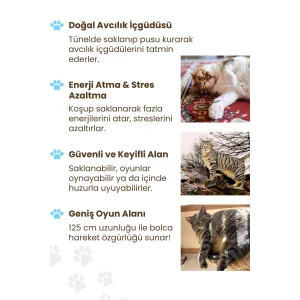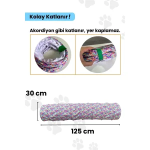 Meow Cat Tunnel Colorful World: Vibrant colors and quirky design will immediately grab your cats' attention and encourage them to play. This product contributes to both your cat's mental and physical health and provides a fun play experience. Natural Instincts: The cat hiding tunnel helps cats satisfy their natural hunting instincts. When they enter the tunnel, they feel safe, and this satisfies basic needs, increasing the happiness and well-being of cats. Durable & Safe Design: A design supported by durable Oxford fabric with vibrant colors and a plastic roving frame ensures the longevity of the tunnel and the safety of your cats. Spacious and Long Tunnel: The Foldable Cat Tunnel offers plenty of freedom of movement for meows with its large 125 cm long play area. They can easily wander around in this tunnel, play and even go to a peaceful sleep.