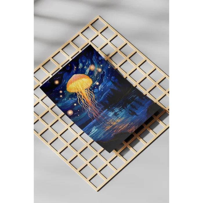 A massive jellyfish that gracefully rises from the water and lights up the night sky with its tentacles.