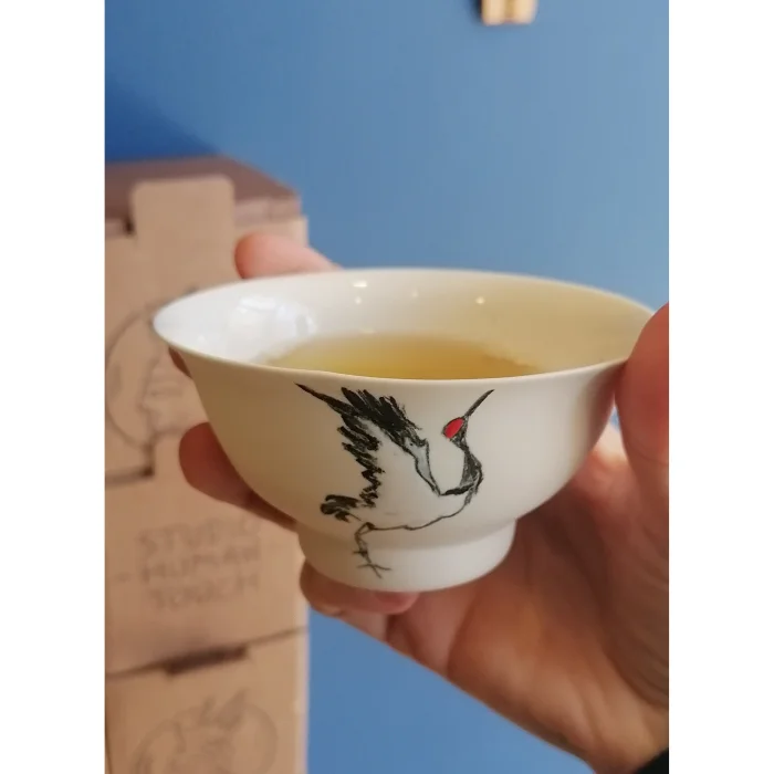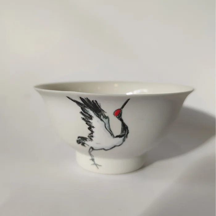 It's handmade fine porcelain. The inner surface of the glass is glaze and the outside is unglazed.