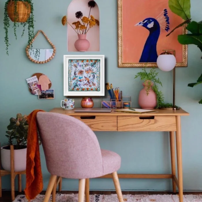 100%Silk Wood Framed