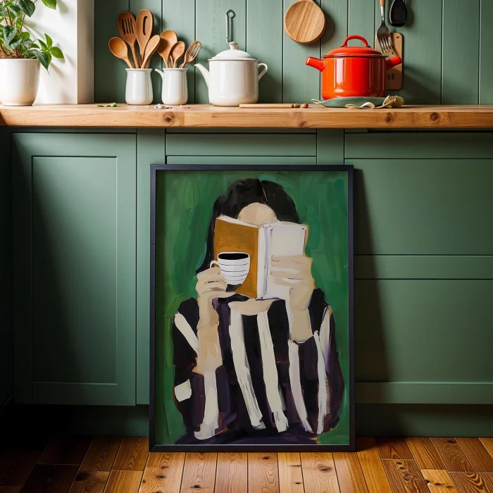 Product: Satır Aralarında Coffee - Emerald Wooden Framed Wall Art