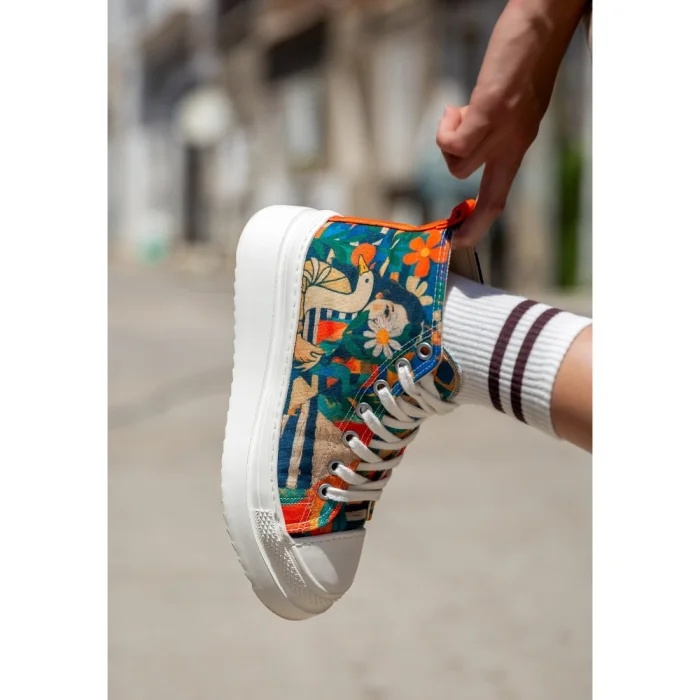 Product: Women Vegan Multicolor Platform High Sneakers - Blossom Hug Design