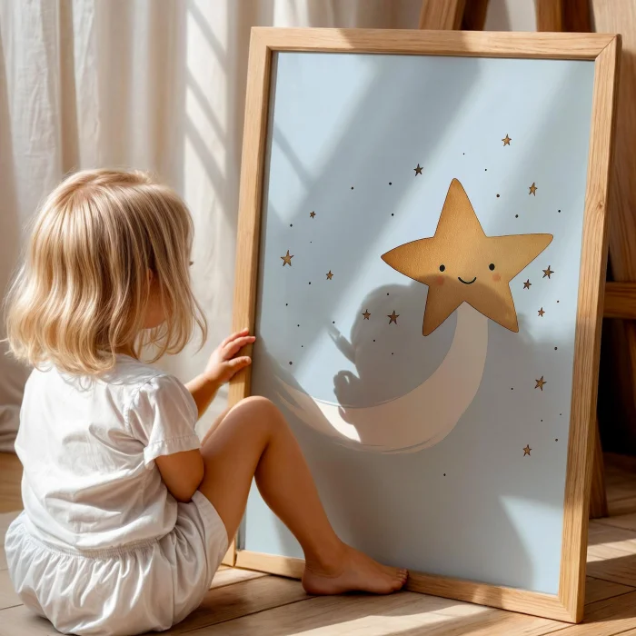 Product: Cute Kuyruklu Star With Blue Background Kids' Room Wooden Wall Art