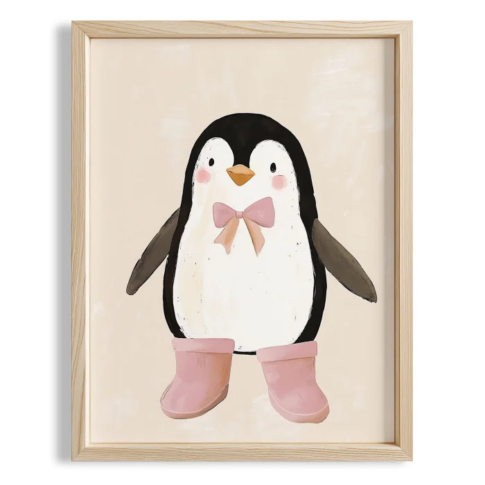 Product: Cute Pink Papyonlu Penguen Boho Girls' Room Wooden Wall Art