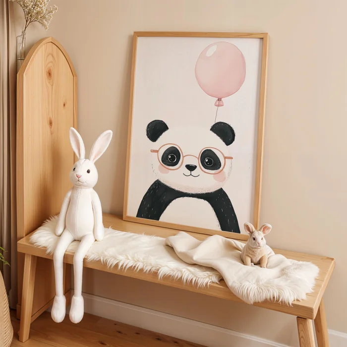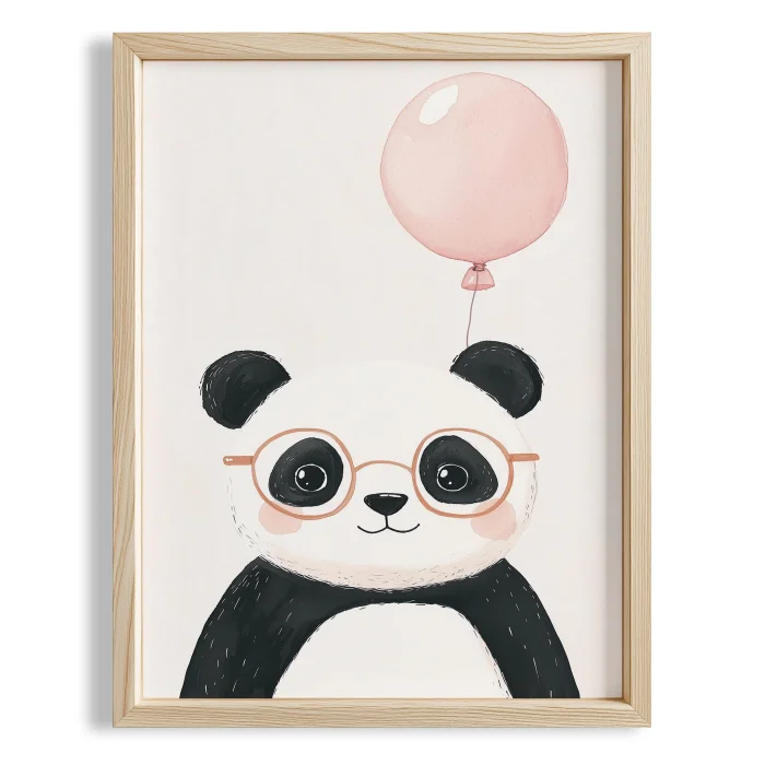 Product: Panda Holding Balloon Wearing Glasses Kids Room Wooden Wall Art