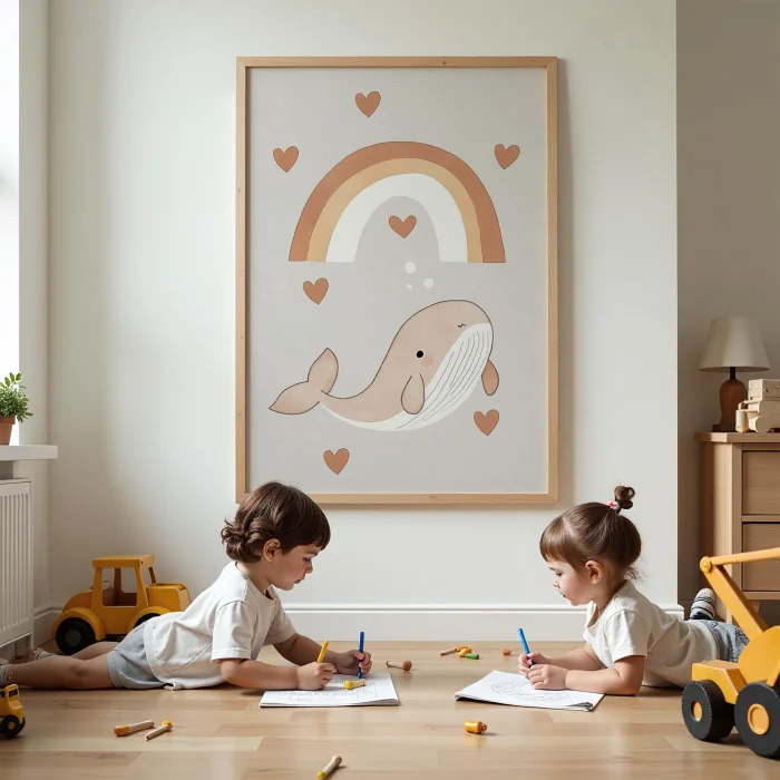Product: Whale Under Rainbow Kids Room Wooden Wall Art