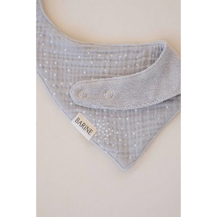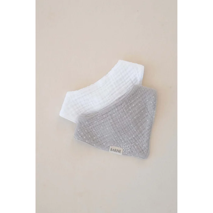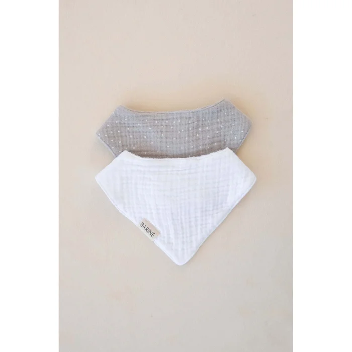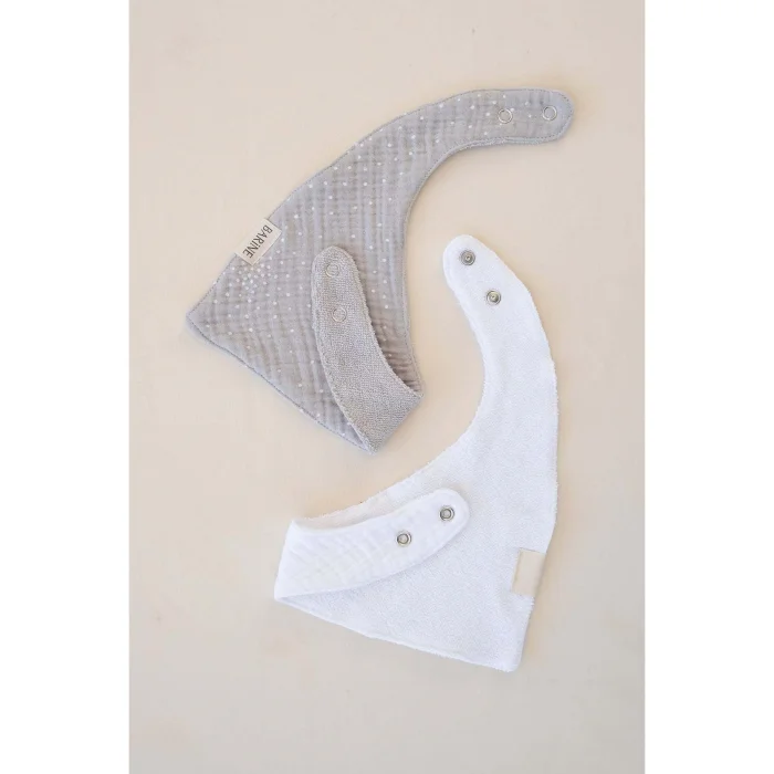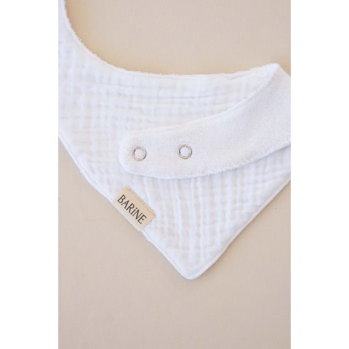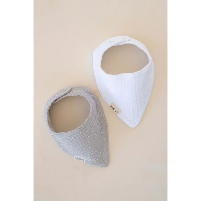 Bandana Shaped Baby Bib Set of 2 offers both elegance and functionality together.; Designed with soft muslin fabric on the front and absorbent loop fabric on the back, these bibs are friendly to your baby's delicate skin; It provides practical use with its snap and adjustable structure.; Ideal for daily use, this set offers both comfort and style.