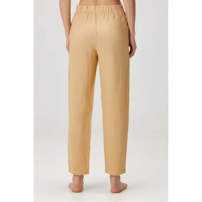 Lino Trousers are an ideal piece that combines comfort and elegance.; Made from a blend of 65% linen and 35% cotton, these trousers offer comfort all day long thanks to their elastic waist structure.; You can use it comfortably while resting at home or during sleep, or you can create a stylish home wear style by combining it with the same color pajama top. It is a choice that is both comfortable and elegant; Material: 65% Linen, 35% Cotton