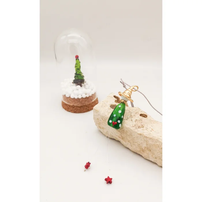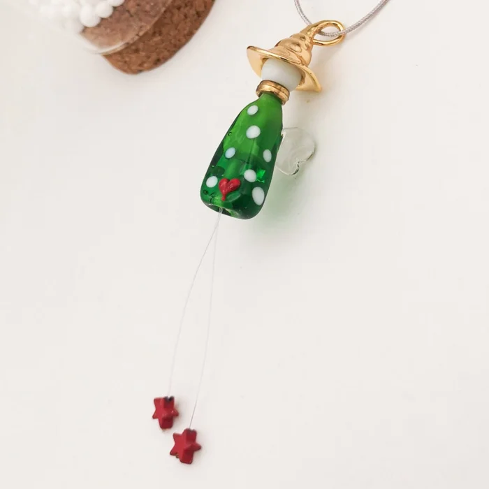 It is designed with glasses made by hand-shaping glass melted in open flame with lampworking trough.
