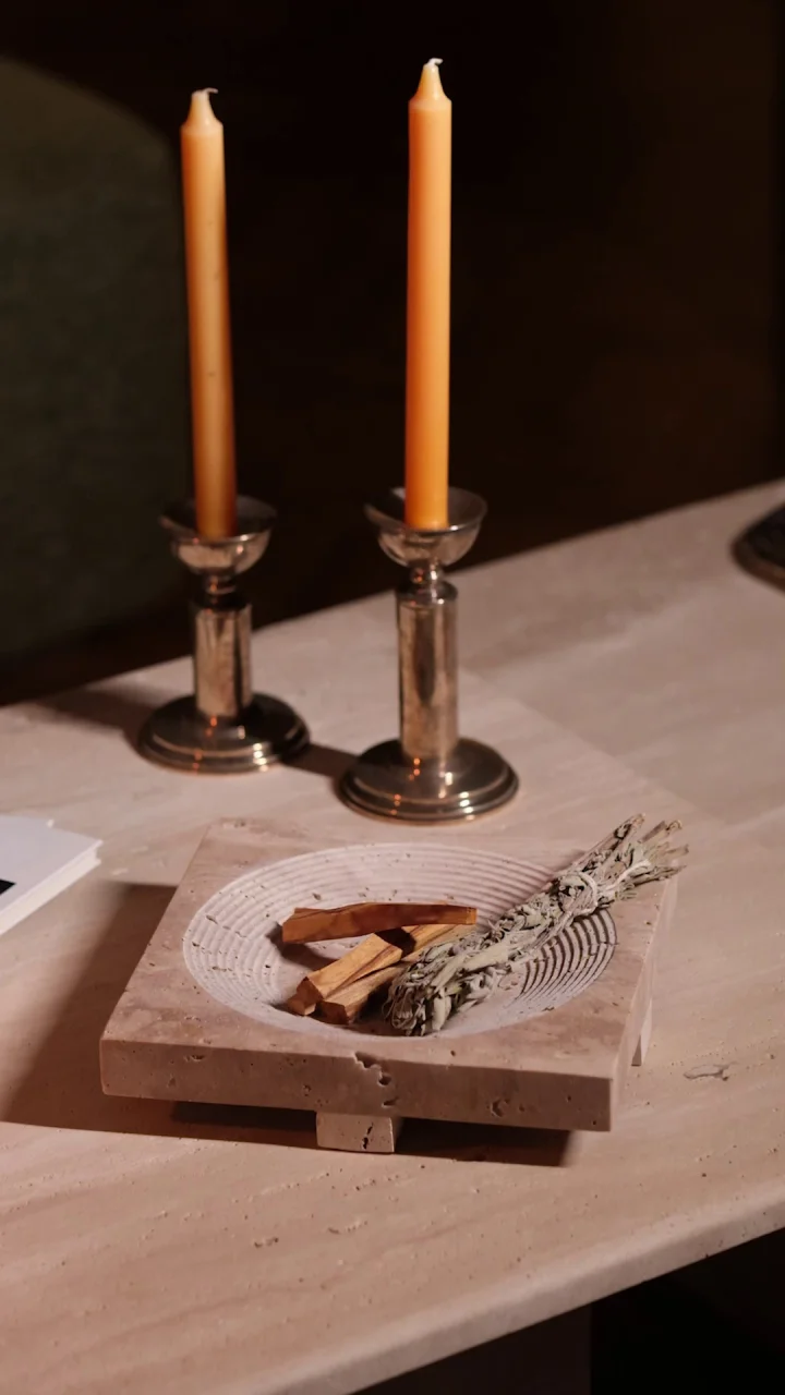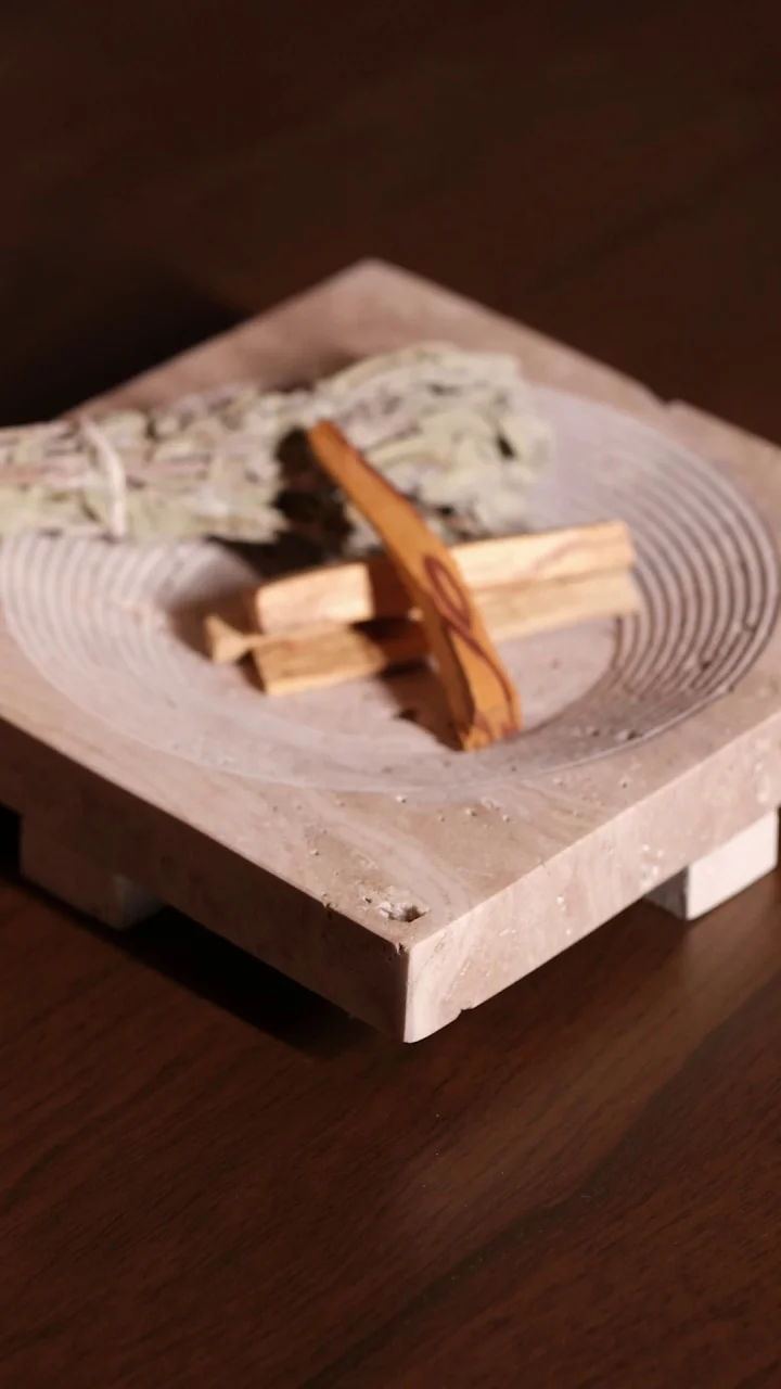 This travertine decorative accessory is ideal for organizing walnuts, fruits, or palo santo incense in daily use. It also stands out beautifully on its own as a stylish table or coffee table centerpiece.