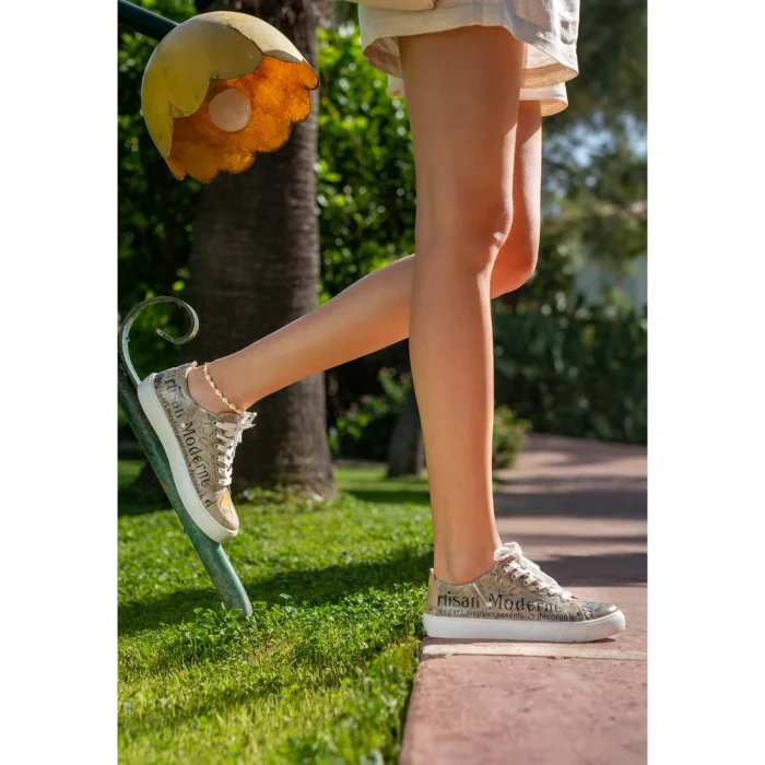 Product: Women Vegan Leather Green Sneakers - Artisan Design