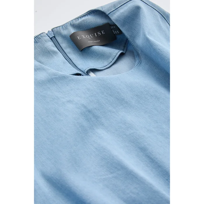 The crew neck, short sleeve and waist-fitting regular mini blue dress will be one of the important pieces of your wardrobe, offering both comfort and elegance together. Thanks to its denim fabric, this dress is durable and suitable for use in all seasons, making it ideal for daily use. It offers a youthful and dynamic look with its mini length and regular cut, while its waist-fitting design elegantly emphasizes body lines. The crew neck detail of the dress provides a classic and timeless look, while the short sleeves offer cool and comfortable wear in hot weather. The pleated hem creates a lively and feminine silhouette, adding a modern touch to the dress. You can easily use this dress, which will complement your elegance when worn alone, to create different styles with white sneakers or stylish sandals. This blue denim dress is an ideal choice for various everyday activities, such as weekend outings, gatherings with friends, or a casual evening event. Its simple and minimalist design allows it to be personalized with different accessories. You can easily change your style to adapt to the season and the event with a jacket or cardigan that you add to it. This dress is designed for those who adopt a modern and comfortable lifestyle. This dress is specially designed for young women who are looking for comfort and style. The durability and breathability offered by denim material offer comfort that lasts all day long. By adding a suitable belt over the dress, you can further highlight the waist accent and highlight your personal style. This piece is a stylish alternative to reflect your youthful energy and style.