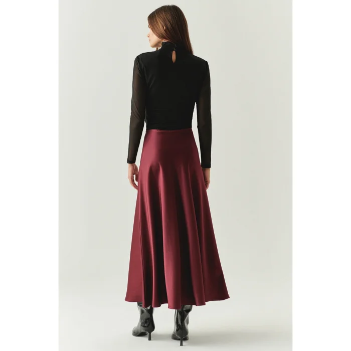 Product: Side Zippered High Waist Grosgrain Detailed Satin Regular Midi Skirt