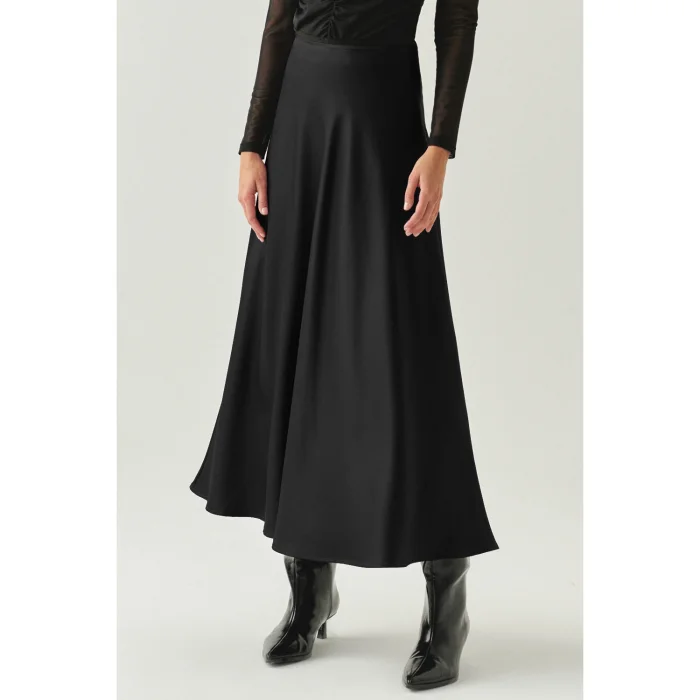 This midi skirt, which draws an elegant line with its soft flowing fabric and high waist cut, is easily worn with its side zipper; Thanks to its simple form, it accompanies an evening invitation with a silk blouse and a sunny weekend breakfast with a basic t-shirt and sandals.