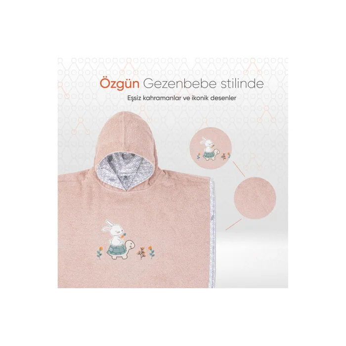 Product DescriptionGezenbebe Hero Hero Hooded Towel Baby Kids Poncho: It's Time to Dry Off with Heroes! Gezenbebe Hero Hero Hooded Towel Baby Kids Poncho is specially designed for your little heroes. This poncho in pastel shades will wrap your baby around and give you a soft hugging feeling. It offers a warm embrace after bathing with the detailed embroidery of Gezenbebe's cute heroes, Elephant, Rabbit, Teddy Bear and Koala, on its hood. Its piping, embellished with the iconic Gezenbebe pattern, makes this poncho not only a functional but also a stylish accessory. With its 100% cotton structure, it does not irritate the skin, absorbs water quickly and shortens the drying time. It's an ideal option for families looking for post-bath comfort and style!" Prominent Features:ORIGINAL GEZENBEBE SIGNATURE: Put your baby's signature on your baby's style with Gezenbebe's unique heroes and iconic pattern. HIGH QUALITY FABRIC: Gezenbebe Hero Hero Hooded Terry BabyChildren's Poncho guarantees your baby's comfort with its breathability and ultra-softness. UNIQUE DESIGN: Its cute and unique protagonists soothe your baby's mood while also adding originality to it. MULTIFUNCTIONAL USE: Not only ideal for daily use, but also for beach and after-pool. SPECIAL FOR SENSITIVE SKIN: With its hypoallergenic properties and easy washability, it is suitable for all skin types, especially ideal for babies with sensitive skin. IDEAL AS A GIFT: With its colorful, cute and unisex design, it is the perfect gift option for all babies. NATURAL DYE: Natural and harmless water-based dyes are preferred in prints. ALWAYS THE BEST FOR YOU: Customer satisfaction is at the forefront for us. With your feedback, we are constantly improving our products and striving for excellence. Technical Details:High Quality Material: Made with premium materials that are lightweight, breathable and quick-drying. Baby Friendly: With its 100% cottony texture, it provides maximum comfort and dryness for your baby's sensitive skin. Usage Time: Our ponchos will be a companion that will not leave your baby's side until the age of 5. Unique Color Options: With attractive color and pattern alternatives such as Bunny, Elephant, Koala and Teddy. Care Instructions: Wash at 30 degrees and dry without exposing to direct sunlight. Gezenbebe Hero Hero Hooded Towel Baby Kids Poncho both reflect your style and maximize your baby's comfort. His smile is the most valuable return for us.