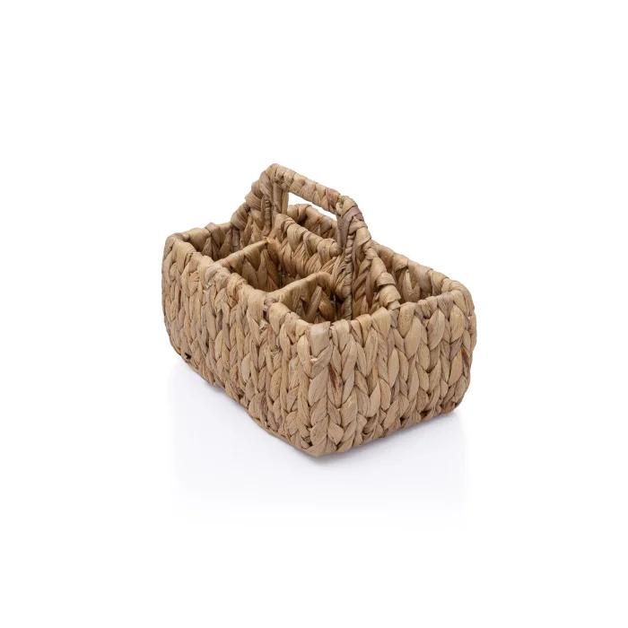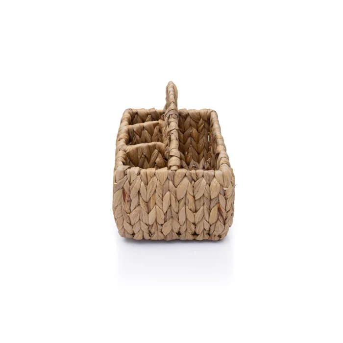 Meander Handmade Water Hyacinth Spoon Holder 8953 Our product is handmade from water hyacinth, it respects nature. It offers an excellent solution for arranging spoons, forks and knives and adds elegance to your tables. Ideal for organizing and displaying makeup brushes, lipsticks, and other cosmetics. The natural elegance of water hyacinth adds a touch of homeliness to your home. It becomes easy to organize your materials by using the compartments according to your needs. It can be used in all areas of home décor, providing elegance and order everywhere from kitchen countertops to bathroom sinks. Meander Handmade Water Hyacinth 4-Compartment Spoon Holder combines elegance and order in your home with its natural material and versatile use. If you want to add a natural touch when arranging your tables or vanity, this product is an ideal choice. The natural plants we use in our products are collected naturally in their natural environment, and they are produced by hand without any processing for the sake of perfect appearance or without using any mold to obtain a fixed size. Due to the natural state of the plants, color differences, color transitions, spots and various differences in the body of the plant are reflected in the product as it is. Again, there may inevitably be plus/minus differences in very small dimensions in the measurement of handmade products. 24x17x16 cm