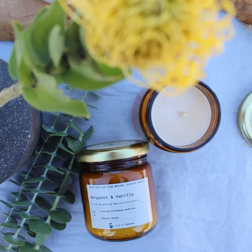 Bergamot & Vanilla Scented %100 Natural Soy Candle have Anti-Stress and Relaxation aromatheraphy effect.