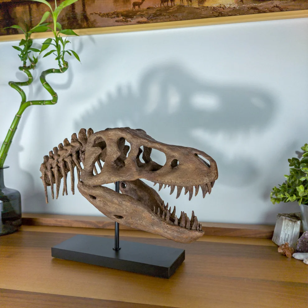 It is a sculpture of museum and scientific research quality, based on the skull of an adult T-Rex fossil, using clay of similar dimensions.