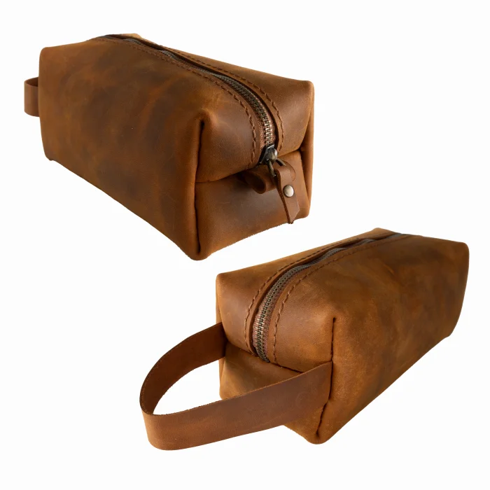 Product: Handmade Genuine Leather Travel & Toiletry Bag - Unisex - Sustainably Produced