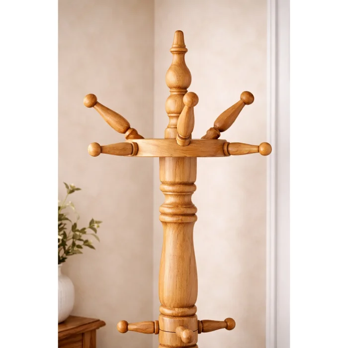 Product: Lathe-turned Wooden Coat Rack - Freestanding Coat Rack And Hallway Hanger - 176 Cm