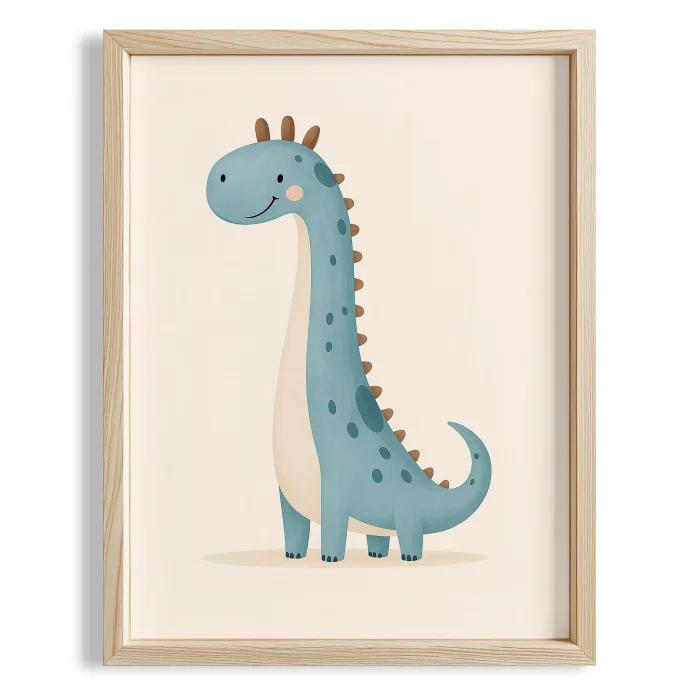 Product: Cute Blue Dinosaur Minimalist Boys' Room Wooden Wall Art
