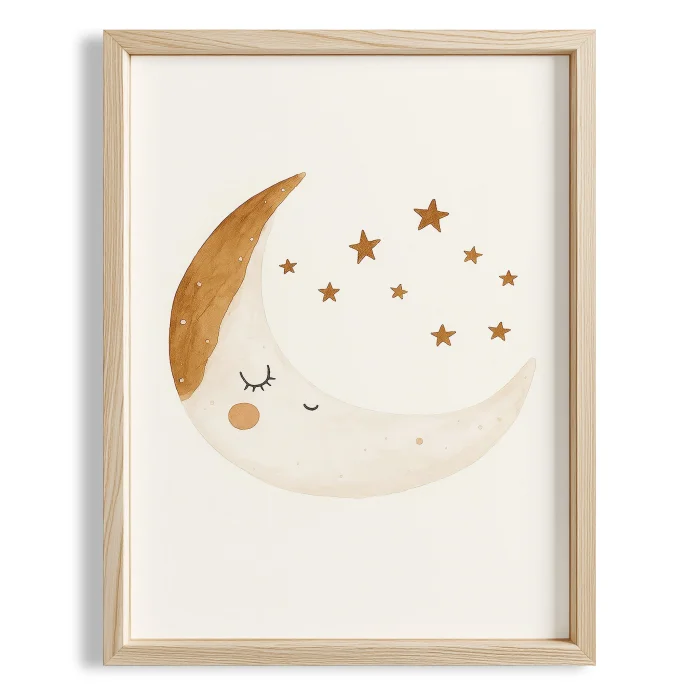 Product: Cute Moon And Stars Minimalist Kids' Room Wooden Wall Art