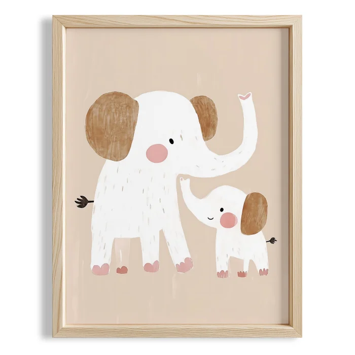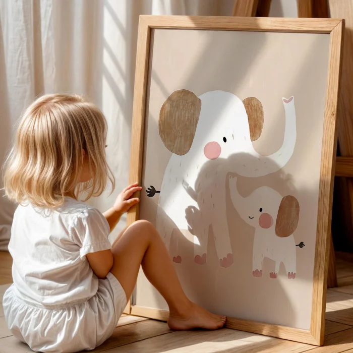 Cute Puppy Elephant Ve Annesi Boho Girls' Room Wooden Wall Art I