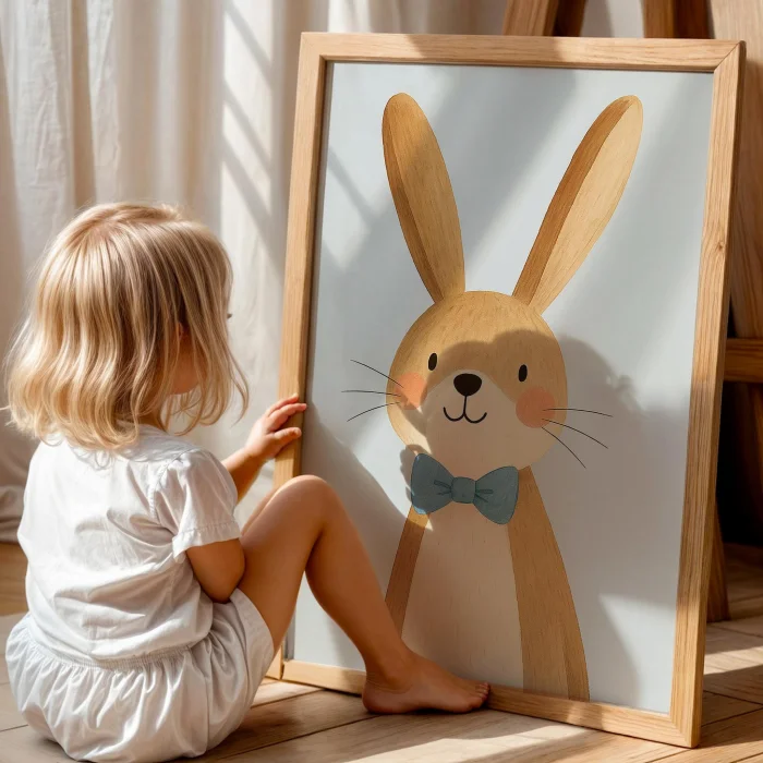 Product: Cute Rabbit Blue Animal -themed Kids' Room Wooden Wall Art
