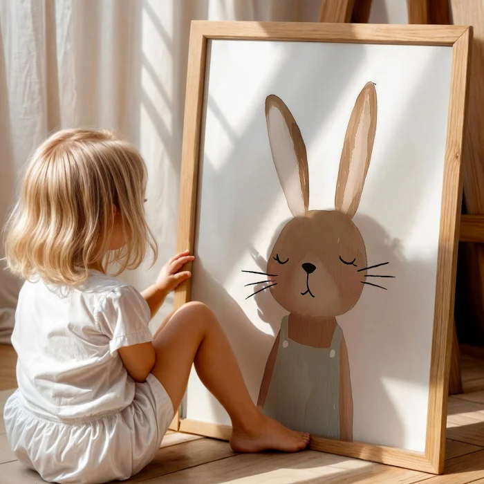 Cute Rabbit Boho Girls' Room Wooden Wall Art