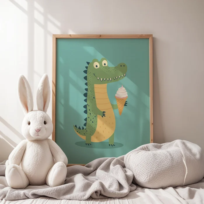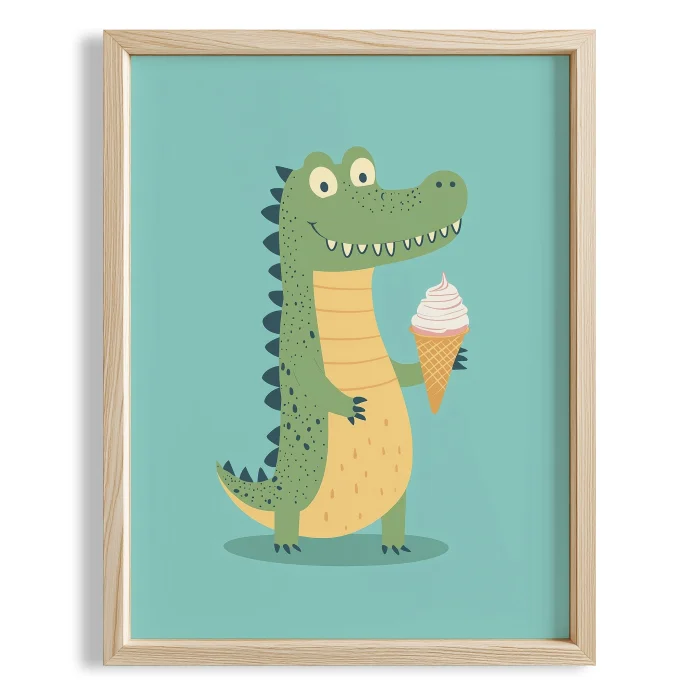 Product: Dondurma Seven Crocodile - Blue Background Children's Room Wooden Framed Wall Art