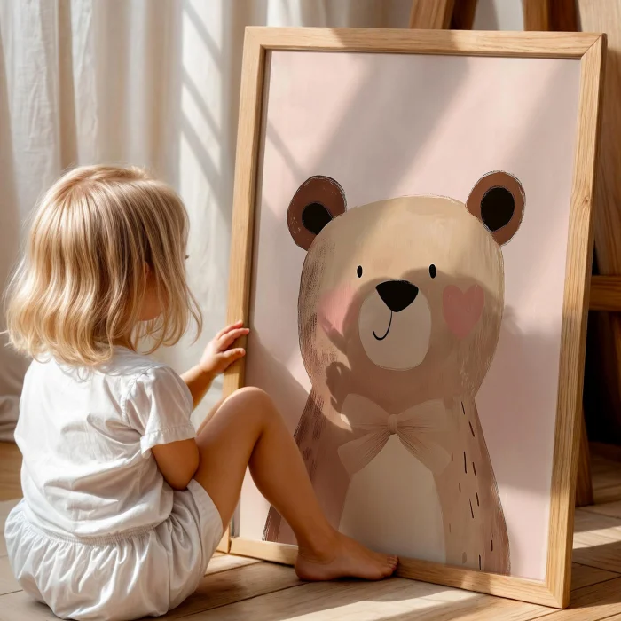 Product: Heart Cute Teddy Bear Boho Girls' Room Wooden Wall Art