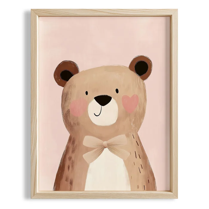 Product: Heart Cute Teddy Bear Boho Girls' Room Wooden Wall Art