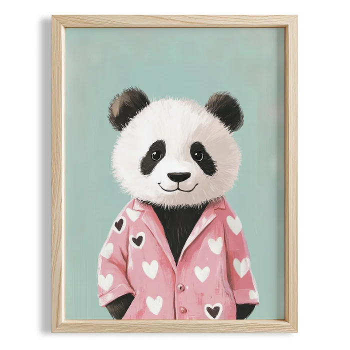 Product: In Pajamas Sleeper Panda - Blue Background Children's Room Wooden Framed Wall Art