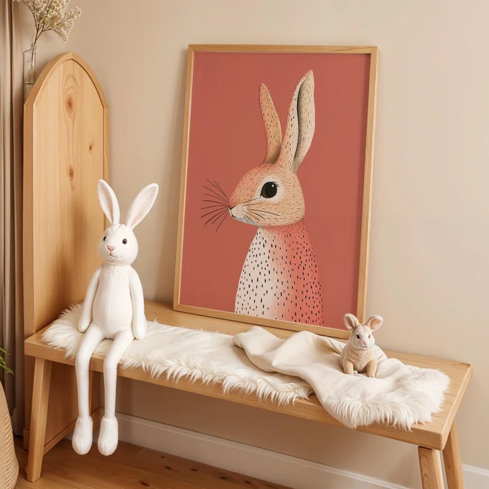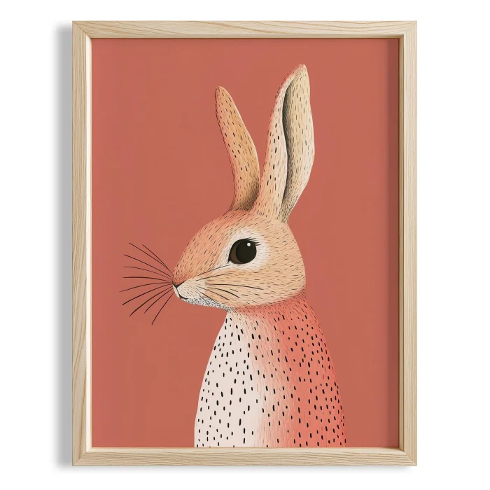 Product: Rabbit Portresi - Kiremit Background Children's Room Wooden Framed Wall Art