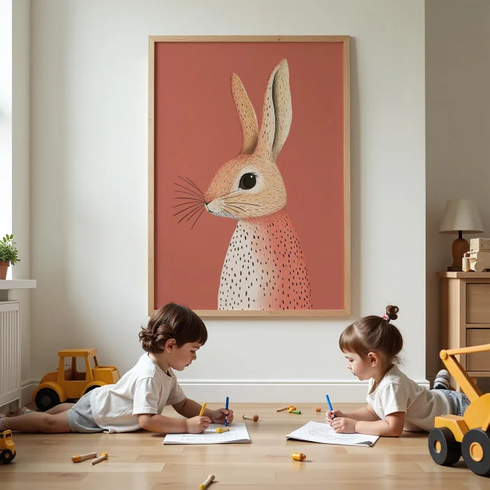 Product: Rabbit Portresi - Kiremit Background Children's Room Wooden Framed Wall Art