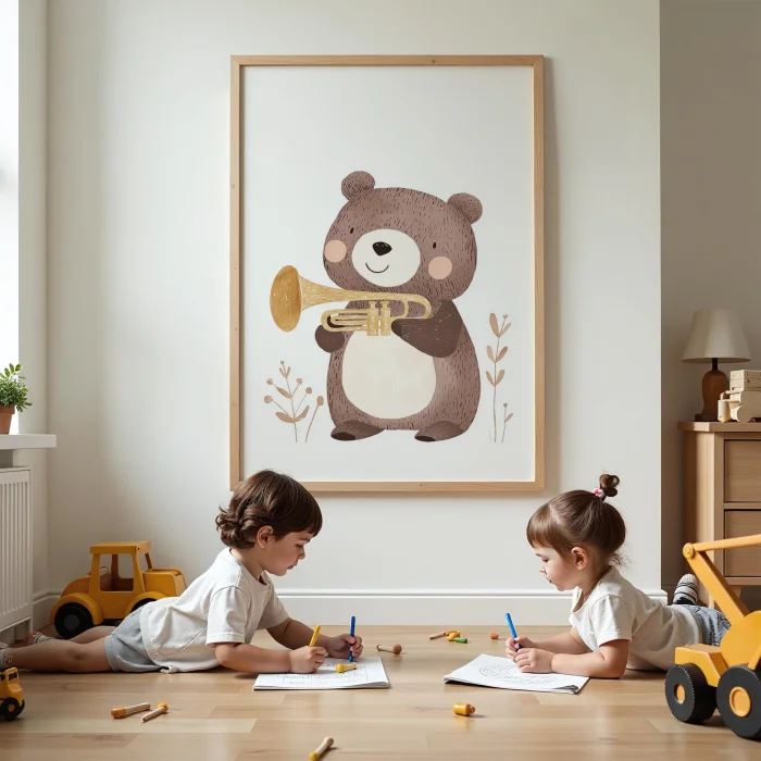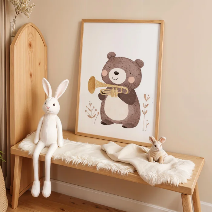 Product: Trampetli Little Bear Children's Room Wooden Framed Wall Art