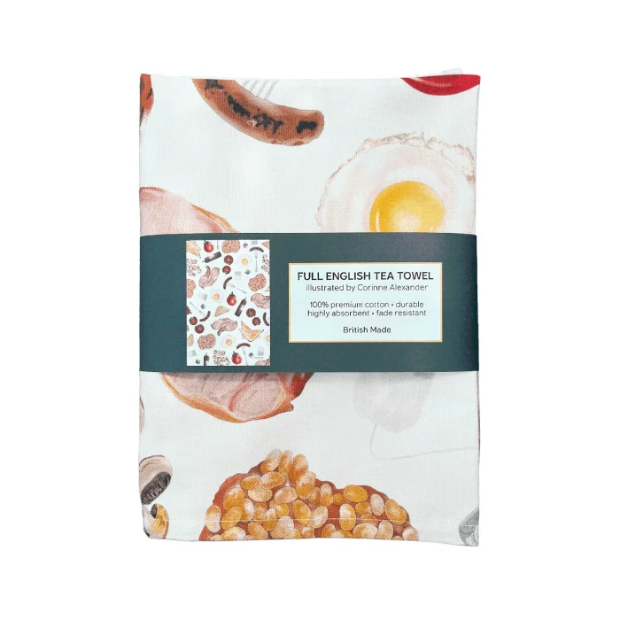 Start Your Day with a Smile: The Full English Tea Towel is bound to brighten up any kitchen with its witty illustrations.