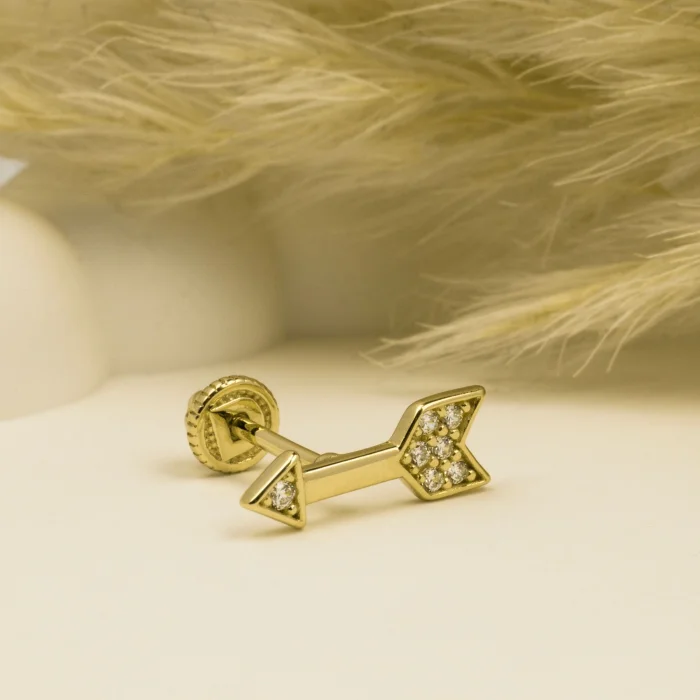 14k Gold Arrow Stone Minimal Helix/cartilage Piercing