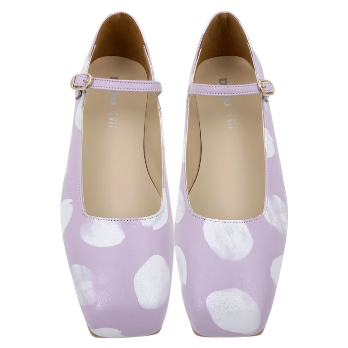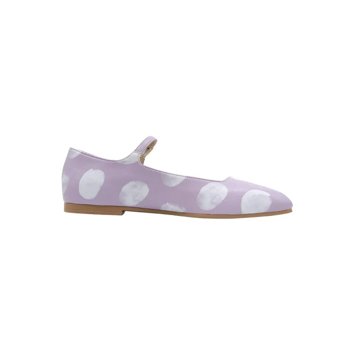 Product: Women Vegan Leather Lilac Ballerinas - Brush Dots White Design