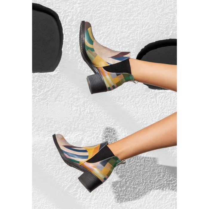 Product: Women Vegan Leather Multicolor Ankle Boots - Book Club Design