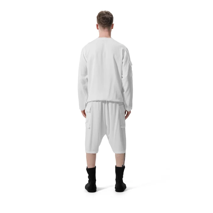 CARGO POCKET DETAILS, SKIRT, COLLAR AND RIB AT THE END OF THE SLEEVES, COMFORTABLE MODERN LONG SLEEVE TOP Model