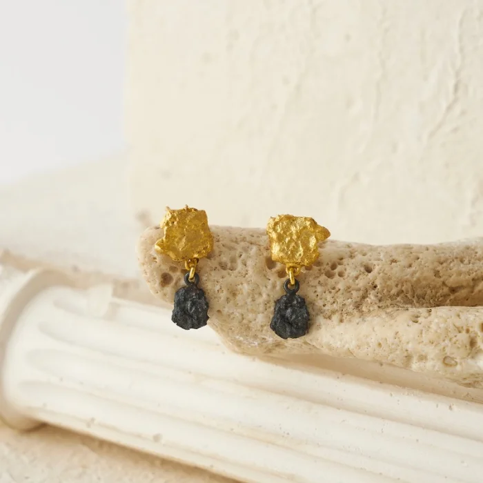 0,5 micron 18K gold plated silver. Oxidized silver..