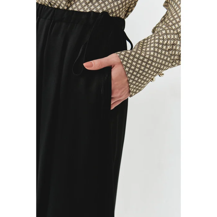 This midi skirt, which can be adjusted according to your size with the tunnel lace at the waist, offers a comfortable range of movement with its A-form drape and regular cut; While it gains practicality with its side pockets, it easily pairs with different pieces from patterned shirts to knitwear sweaters thanks to its simple surface, effortlessly adapting from the office to the weekend.